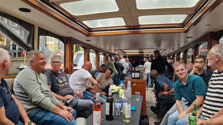 Na de rondleiding werden we met de bus naar Loetje aan het IJ gebracht, waar een lunch voor ons klaarstond. Na de lunch liepen we naar een rondvaartboot die ons een rondvaart gaf op het IJ en door de grachten. Ons andere lid, Kees Berk, vaart periodiek op deze bootjes en kon als spreekstalmeester op de boot zijn verhaal doen over Amsterdam. Ondanks de regen was het een gezellige tocht.